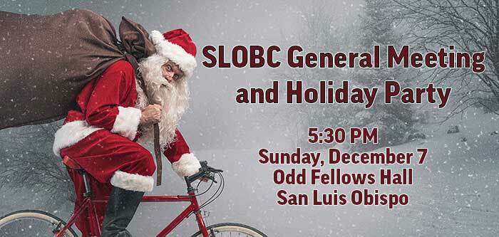 This year's General Meeting and Holiday Dinner will be held at the Odd Fellows Hall, 520 Dana Street, San Luis Obispo on Sunday, December 7, 2025. Please plan on arriving at 5:30 PM. Dinner will be served at 6:00.